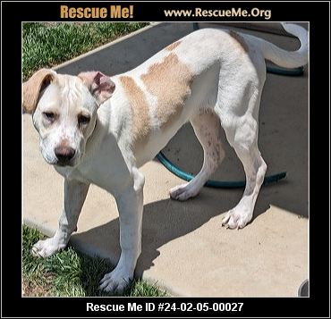 Denim is one of 7 dogs transferred to us from a rescue near the Mexico border. He is ivory with tan spots. They are